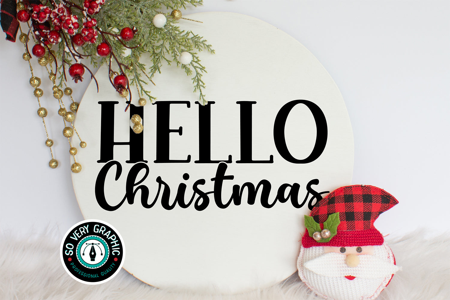 Hello Christmas Round Wood Welcome Sign SVG Cut File for Cricut, Silhouette, Brother Scan N Cut machines.