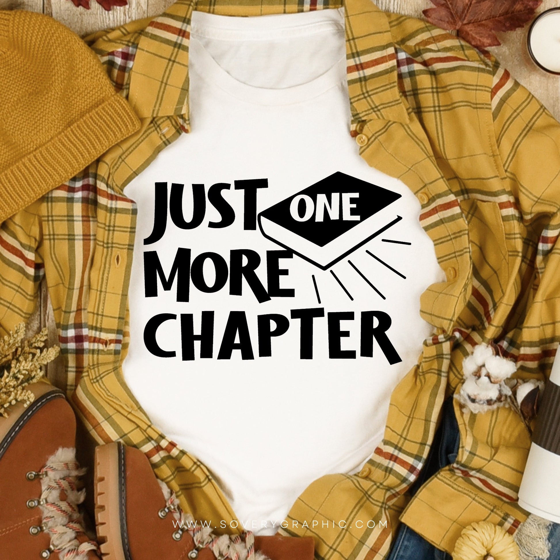 This "Just One More Chapter" SVG is the perfect digital cut file for any book lover or bookworm! Use this instant download to create personalized items like t-shirts, tote bags, mugs, and more. The design is compatible with popular cutting machines such as Cricut and Silhouette.