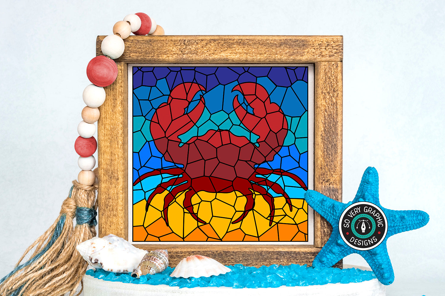 If you're looking to add a touch of whimsy and coastal charm to your home décor or small business products, the Stained Glass Mosaic Crab SVG Cut File is a perfect choice. This intricately designed file features a stunning faux stained glass look and a nautical vibe that will add a unique flair to any project.