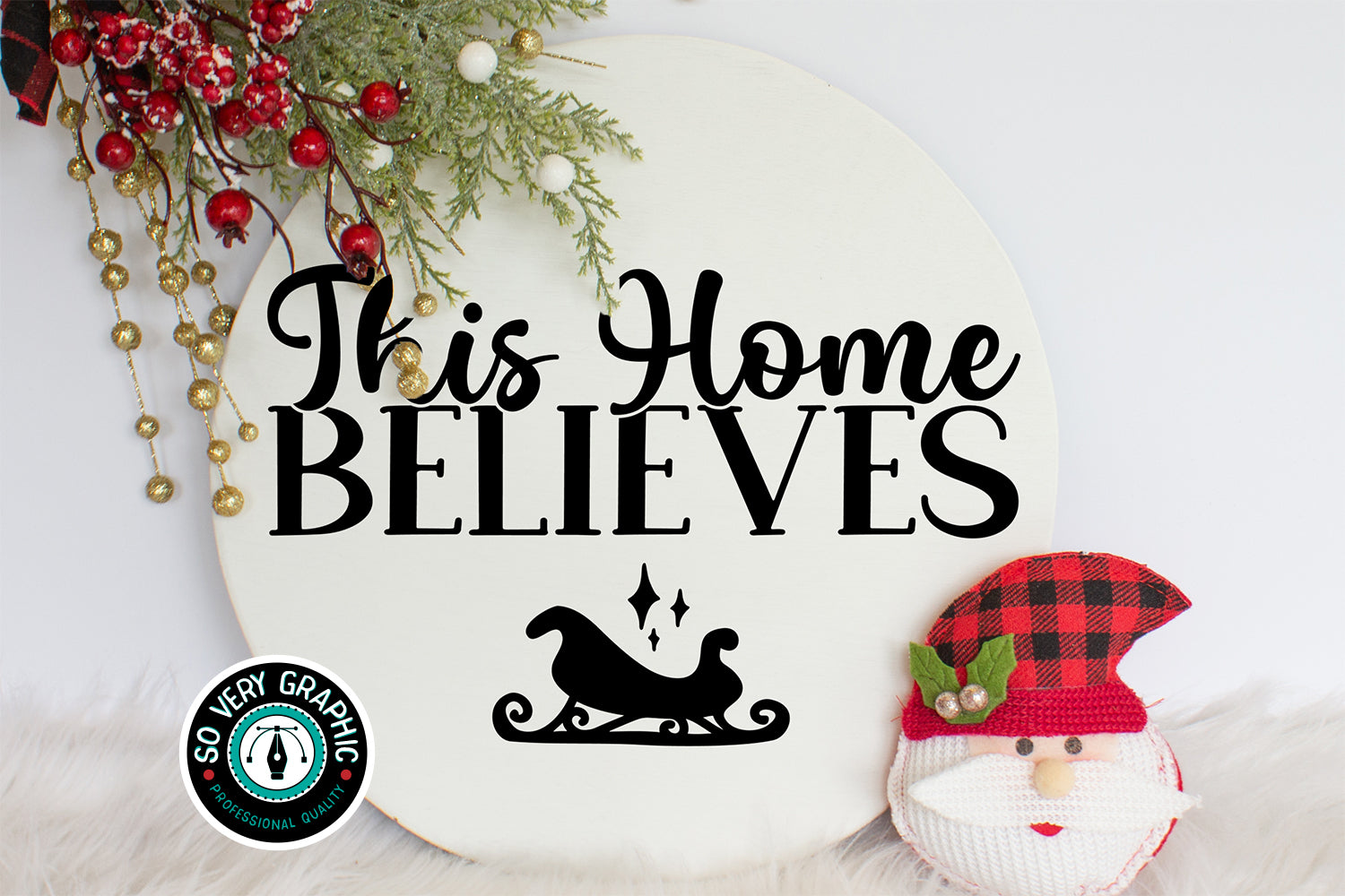 This Home Believes Round Wood Welcome Sign SVG Cut File for Cricut, Silhouette, Brother Scan N Cut machines.