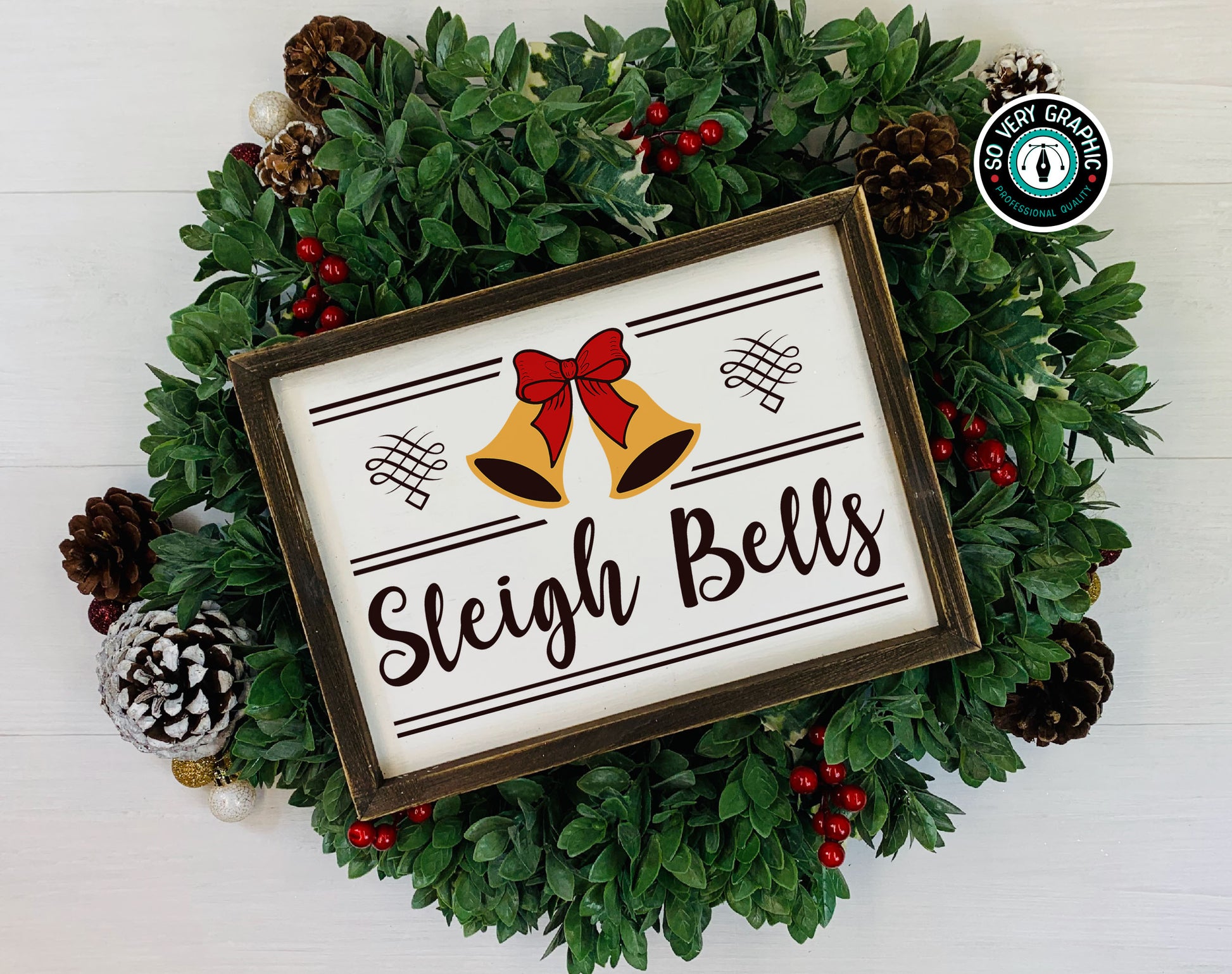 Vintage Sleigh Bells Sign SVG Cut File for Cricut, Silhouette, Brother Scan N Cut machines.