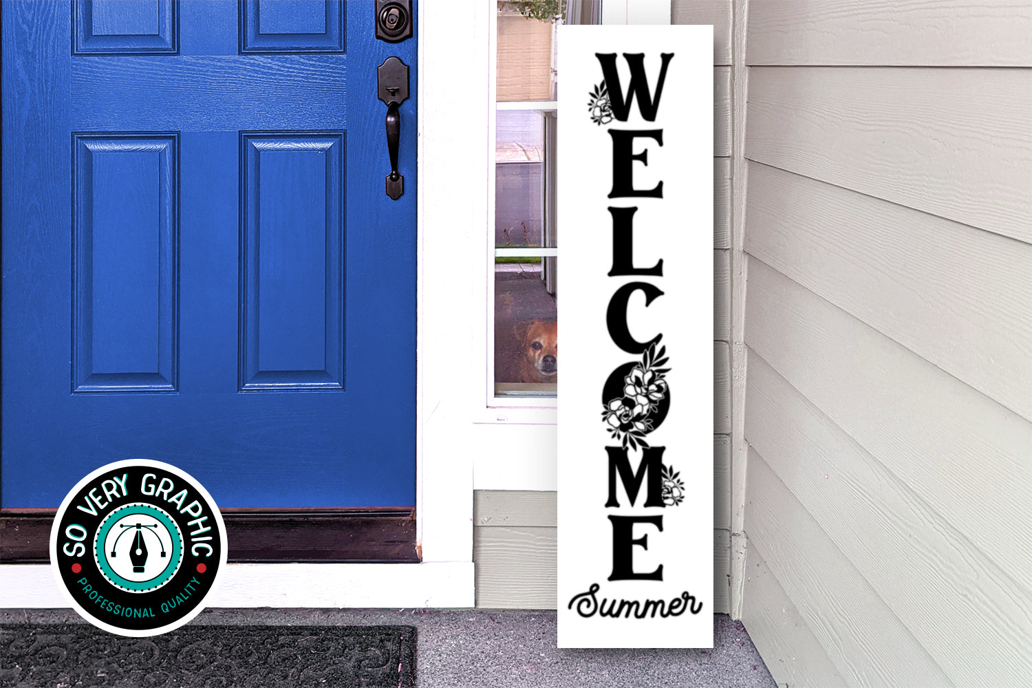 Welcome Summer Vertical Porch Sign SVG Cut File for Cricut, Silhouette, & Scan N Cut machines.