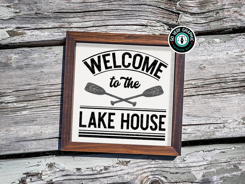 Welcome to the Lake House SVG Cut File for Cricut, Silhouette, Brother Scan N Cut machines features canoe paddles.