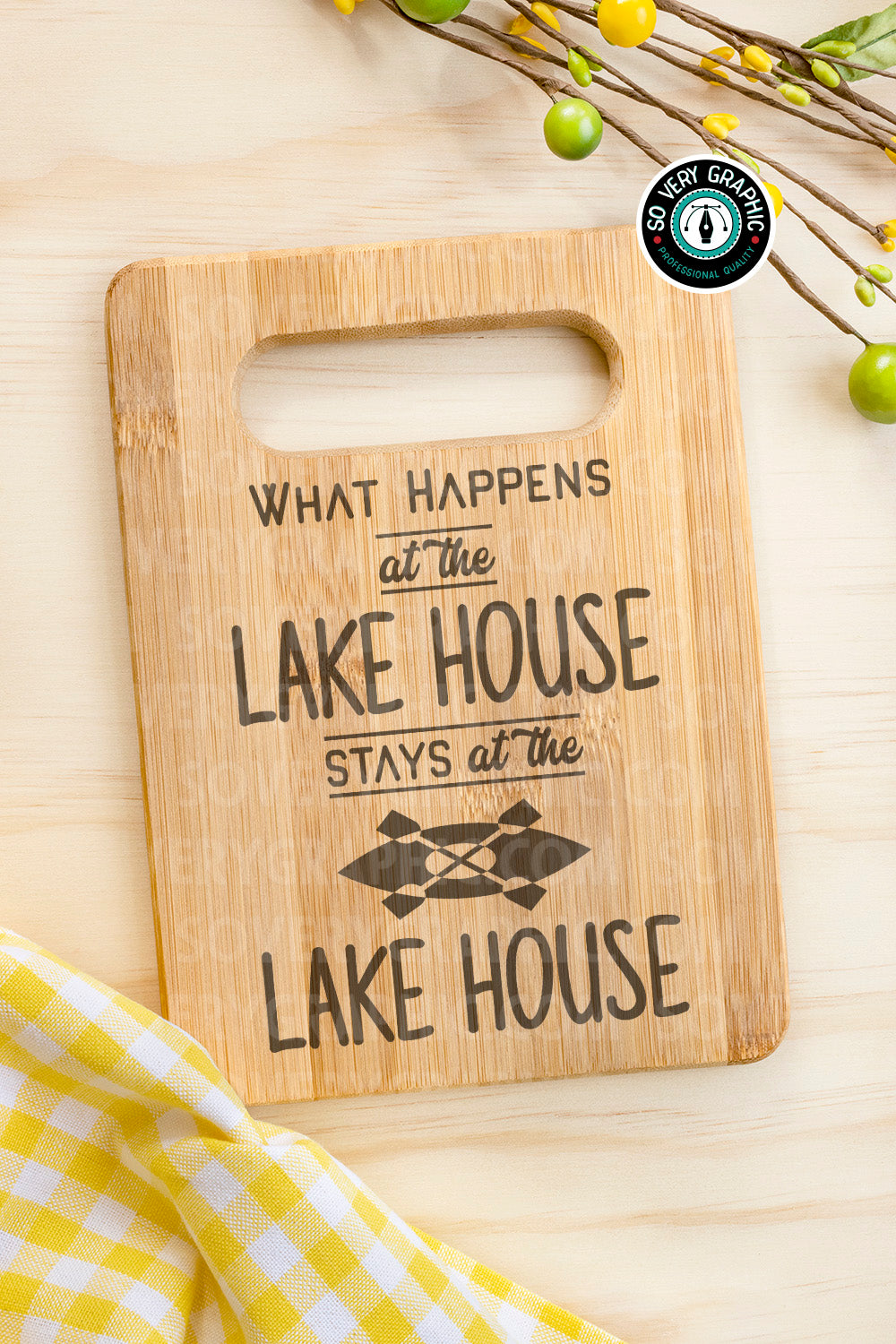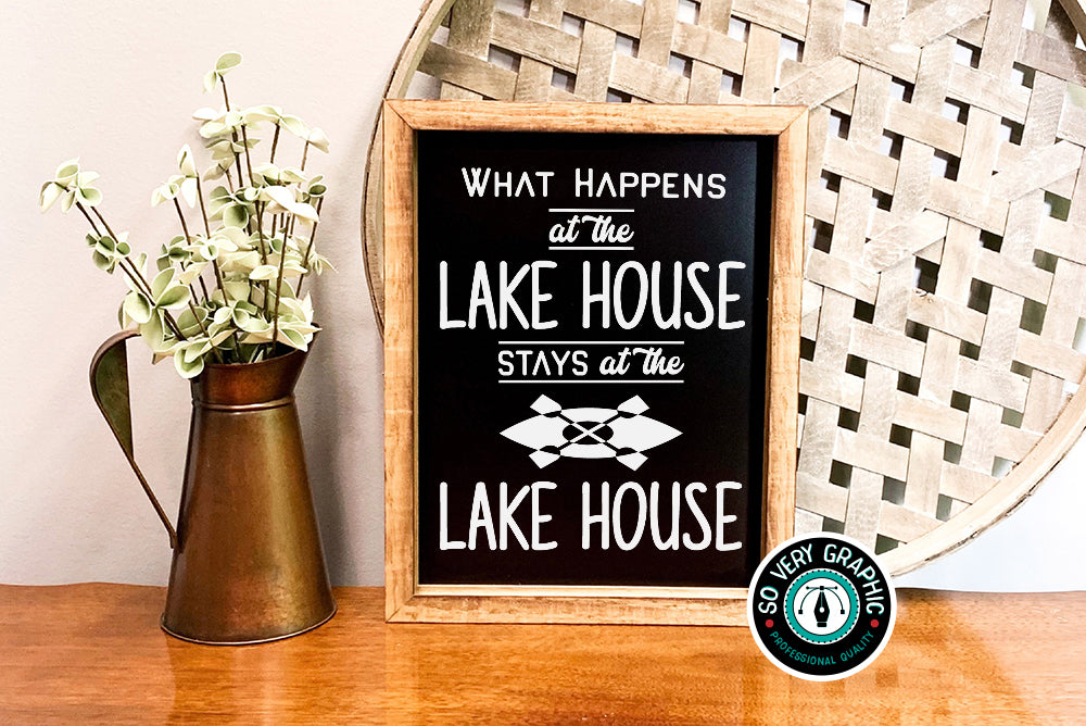 What Happens at the Lake House Stays at the Lake House SVG Cut File for Cricut, Silhouette, Brother Scan N Cut machines.
